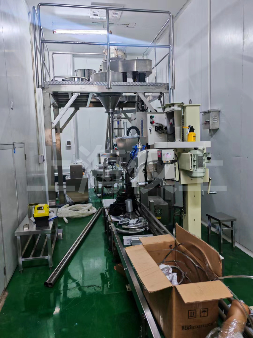 25公斤大包生產(chǎn)線安裝調(diào)試進(jìn)行中,目的地江西